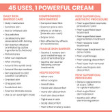 این کرم علاوه بر اینکه یک آبرسان عالی برای پوست به حساب میآید و مشکل خشکی پوست را حل میکند، برای بهبود و محوسازی جای زخم، جوش، انواع بریدگیها، بخیه، انواع التهابات پوستی و حتی کاهش چین و چروک کاربرد دارد.