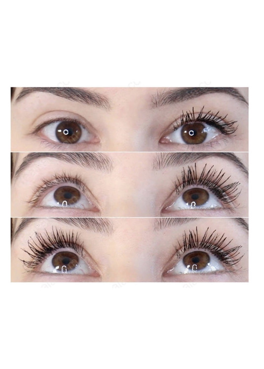 - برس ریمل را در برابر مژهها نگهداشته و از ریشه تا نوک تار مژه حرکت دهید تا حجم و طول دلخواه، بدست بیاید.