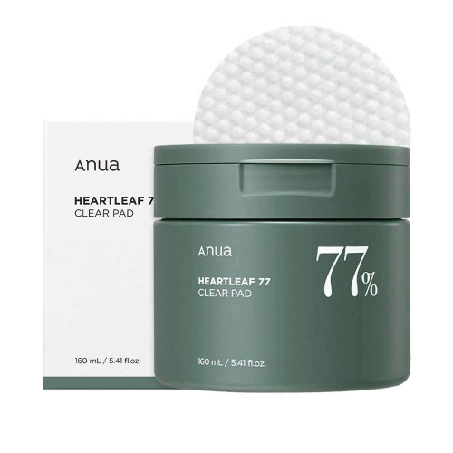 تونر پد پاک کننده و تسکین دهنده Heartleaf 77 آنوا برای لایه برداری ملایم سلولهای مرده از سطح پوست، کاهش جوشهای سرسیاه، سرسفید و منافذ باز و مسدود فرموله شده است.