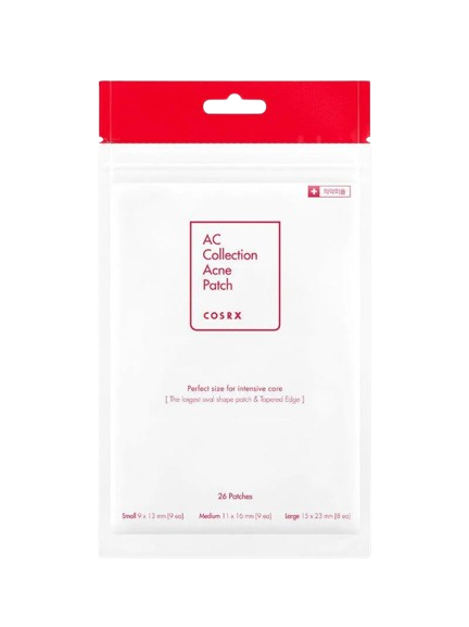پچ آکنه کالکشن COSRX AC در 3 اندازه مختلف (کوچک، متوسط، بزرگ) عرضه می شود تا لکه های آکنه را با توجه به اندازه آنها پوشش دهد. با شکل بیضی، پچ آکنه COSRX AC Collection میتواند به مساحت بیشتری نسبت به موارد گرد برسد. برای آکنه بدن نیز قابل استفاده است.