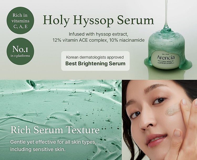 سرم زوفا مقدس آرنسا یک سرم آبرسان است که باعث افزایش درخشندگی و جوانسازی پوست می شود. فرموله شده با عصاره زوفا سبز فرانسوی و ویتامین های A، C و E، به بهبود بافت پوست و مراقبت از منافذ کمک می کند، با بافتی سبک و انعطاف پذیر که آبرسانی و طراوت فوری را فراهم می کند.