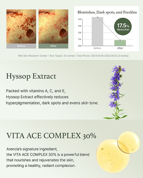 - حاوی 30% ترکیبات منحصر به فرد Vita ACE Complex با محتوای بالای ویتامین است که باعث افزایش روشنایی و درخشندگی پوست می شود.