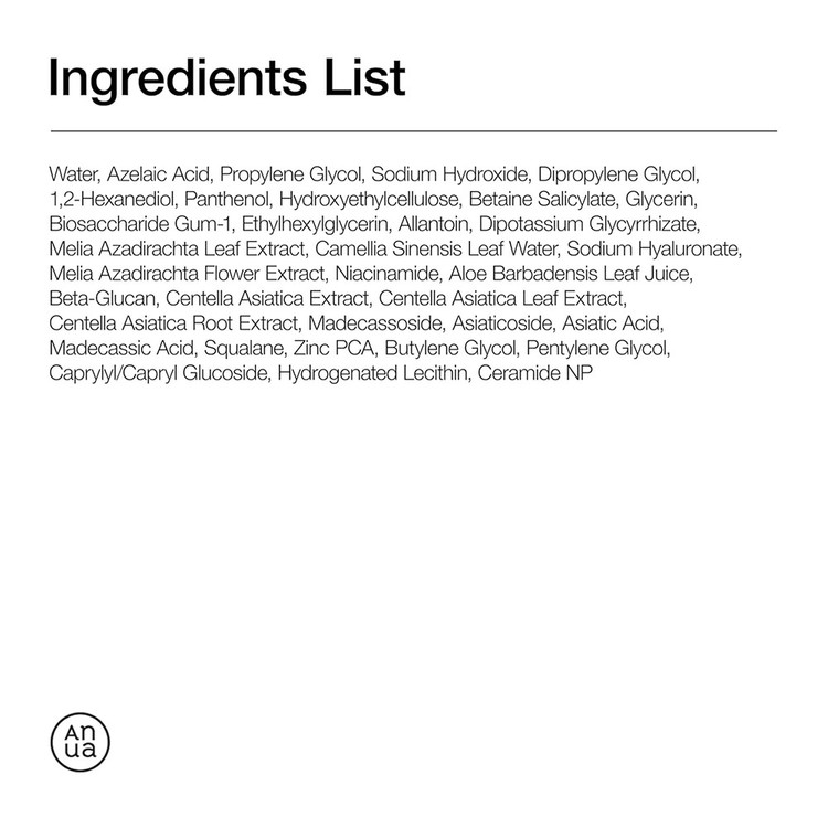 این سرم علاوه بر آزلائیک اسید و هیالورونیک اسید، شامل ترکیبات دیگر همچون عصاره سنتلا آسیاتیکا (Cica) و عصاره ریشه شیرین بیان است که به تسکین و محافظت از پوست کمک میکنند. سنتلا آسیاتیکا به دلیل خواص ضد التهابی و ترمیمکننده اش، برای پوست های آسیب دیده و ملتهب بسیار مفید است. این گیاه به تسریع فرآیند بهبود پوست کمک کرده و در کاهش قرمزی و حساسیت پوست مؤثر است. همچنین عصاره شیرین بیان با خاصیت ضد التهابیاش، به کاهش قرمزی و بهبود رنگ پوست کمک کرده و به روشنتر شدن پوست و کاهش لکه های تیره کمک میکند.