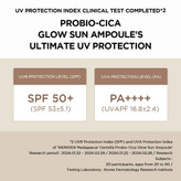 آمپول ضد آفتاب درخشان کننده سنتلا اسکین 1004 SKIN1004 Madagascar Centella Probio-Cica Glow Sun Ampoule یک ضد آفتاب سبک و شبیه آمپول است که محافظت بالایی در برابر اشعه های UVA و UVB (SPF50+ PA++++) ارائه می دهد و در عین حال بر تسکین، تقویت و آبرسانی پوست برای ایجاد یک درخشش طبیعی و شبنم دار تمرکز دارد. این محصول بخشی از لاین پروبیوتیک-سیکا SKIN1004 است که حاوی سنتلا آسیاتیکا تخمیر شده برای افزایش فواید آن است.