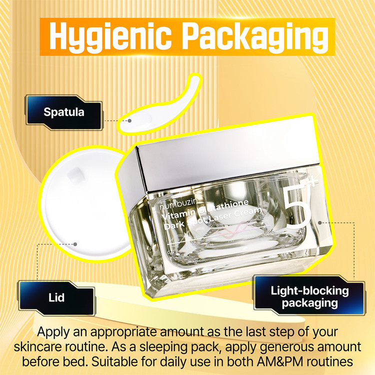 کرم گلوتاتیون نامبوزین یه کرم روشن کننده قوی پوست numbuzin No.5 Vitamin Glutathione Laser Cream 50ml با ترکیب قوی ویتامین ها و آنتی اکسیدان ها، مثل یه لیزر نامرئی روی پوستت کار می کنه و کمک می کنه لک ها کم رنگ بشن، رنگ پوستت یکدست بشه و یه درخشندگی طبیعی بهش برگرده.