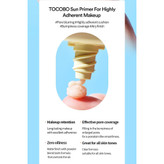 ضد آفتاب ویتا پرایمر توکوبو یک محصول چند منظوره است که در کنار مزایای پرایمر، محافظت کاملی در برابر اشعههای مضر UVA و UVB با SPF50+ فراهم میسازد. این برای محو کردن منافذ، حتی بافت پوست و ایجاد یک پایه صاف برای آرایش طراحی شده است. فرمول این محصول سبک، ضد آب است و شامل موادی مانند اسید مادکاسیک و آسیاتیکوزید برای تسکین و تقویت سد پوستی است. همچنین به عنوان یک پرایمر شیمیایی وگان خورشید توصیف می شود.