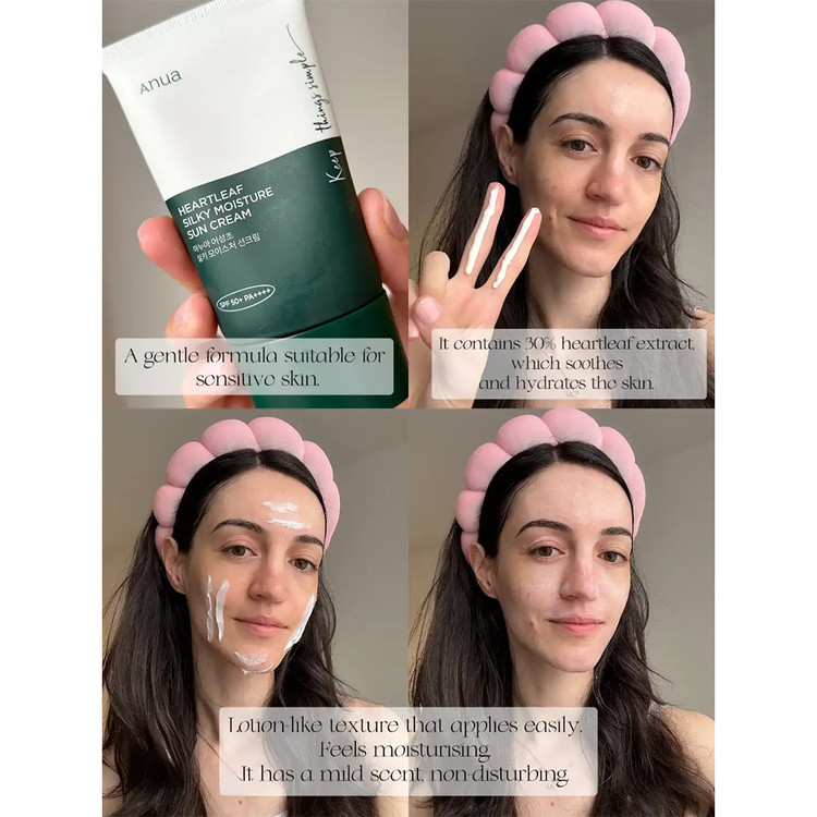 ضد آفتاب مرطوب کننده و تسکین دهنده آنوا Anua – Heartleaf Silky Moisture Sun Cream یک کرم ضد آفتاب چندکاره است که به طور موثر از پوست در برابر اشعه های مضر خورشید محافظت می کند. این محصول دارای SPF 50+ PA++++ است که به معنای محافظت قوی در برابر اشعه های UVA و UVB است. این کرم ضد آفتاب از فیلترهای شیمیایی استفاده میکند که به طور موثر از پوست در برابر آسیب های ناشی از نور خورشید محافظت می کنند.