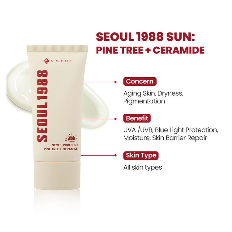 ضد آفتاب سئول 1988 کی سکرت “Seoul 1988 Sun : Pine Tree + Ceramide” از برند کرهای کی سکرت KSECRET یک محصول مراقبت از پوست است که با تمرکز بر محافظت قوی در برابر آفتاب و در عین حال تقویت سد دفاعی پوست، طراحی شده است. این ضد آفتاب با SPF 50+ و PA++++، بالاترین سطح محافظت در برابر اشعههای UVA و UVB را ارائه میدهد و در عین حال با ترکیبات مغذی خود، به سلامت کلی پوست کمک میکند.