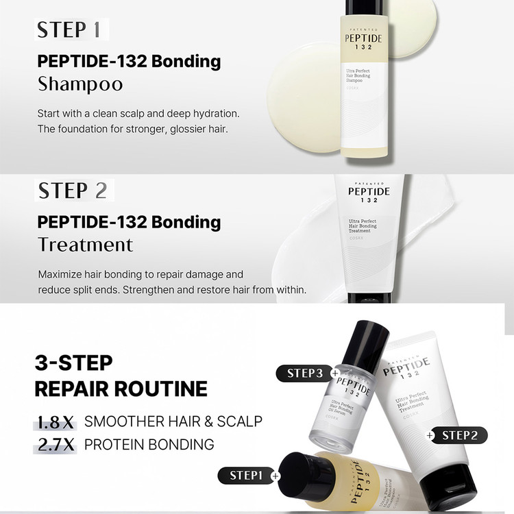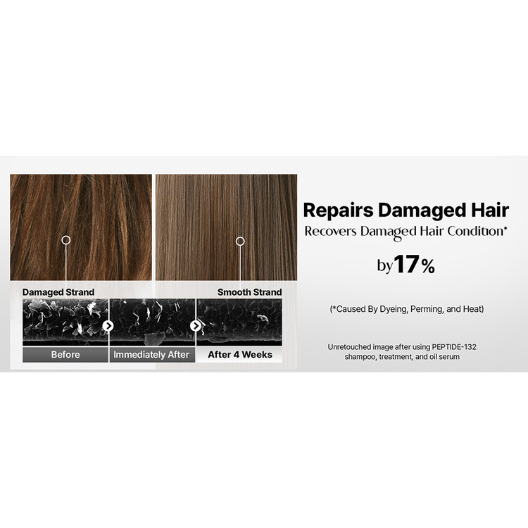 - پپتید-132™ (PEPTIDE-132™): این ترکیب اصلی به ترمیم و بازسازی پیوندهای آسیبدیده مو کمک میکند، مقاومت مو را افزایش میدهد و آن را از آسیبهای آینده محافظت میکند.