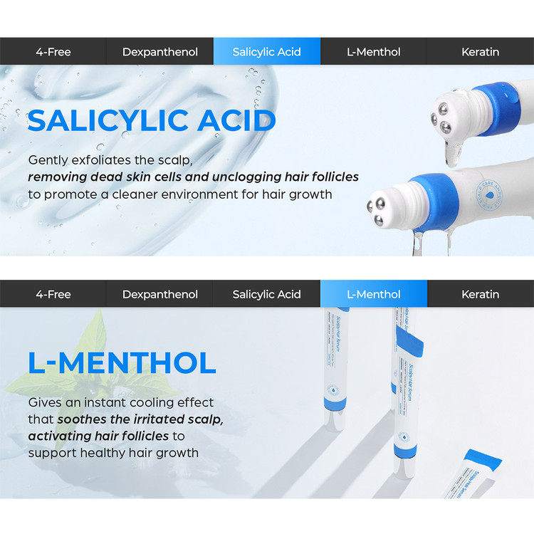 - حاوی اسید سالیسیلیک، منتول، دکسپانتنول برای درمان پوست کف سر