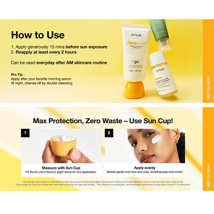 کرم ضد آفتاب آبرسان زیرو کست آنوا (Anua Zero-Cast Moisturizing Finish Sunscreen) با SPF 50، یک ضدآفتاب فوقالعاده پیشرفته است که علاوه بر ایجاد محافظت قوی در برابر UVA و UVB، با داشتن ترکیبات آبرسان فعال، رطوبت پوست را حفظ کرده و مانع خشکی، زبری و احساس کشیدگی میشود.