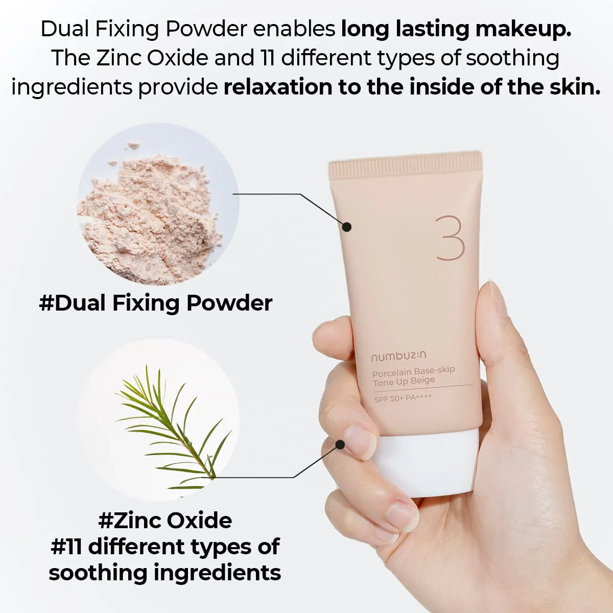 کرم ضد آفتاب نامبوزین Numbuzin No.3 Porcelain Base-skip Tone Up Beige